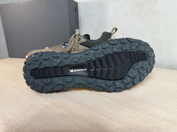 Трекинговые кроссовки коричневого цыета из натурального нубука с родошвой Michelin. Дышащие, не промокают, хорошая сцепка. Размер 40, состояние очень хорошее Артикул: 507648