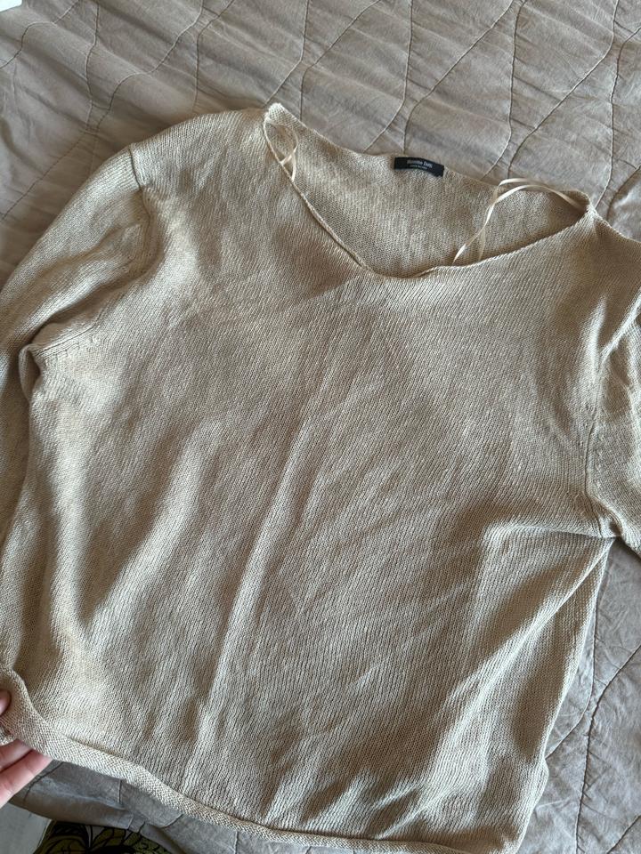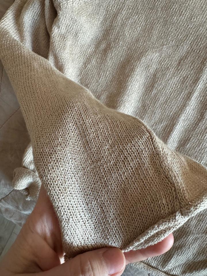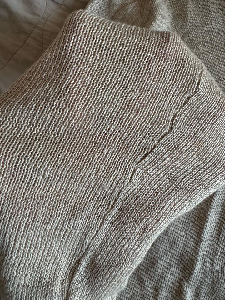 Легкая и нежная кофточка со свободным вырезом. Размер стандарт от хс до м-л. Носила один раз. На левом рукаве есть вот такой фирменный дефект, рот носке совсем не заметно. Артикул: 507778