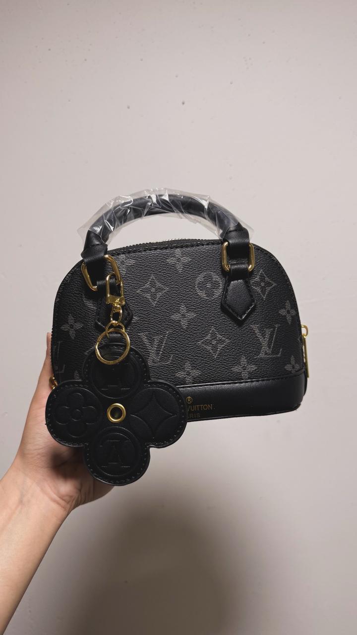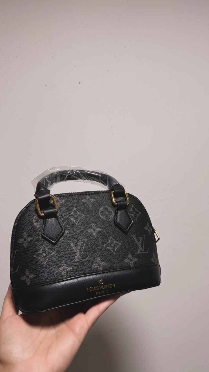 Мини-альма под бренд LV. В черно-сером цвете, с красным подкладом. Имеется длинный ремешок. Артикул: 507930