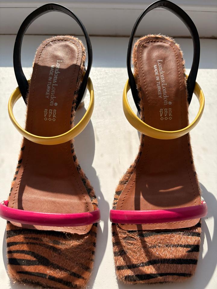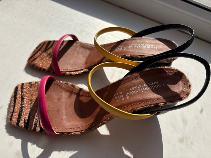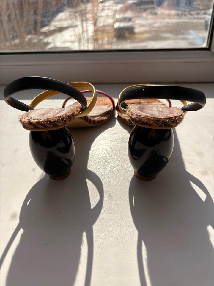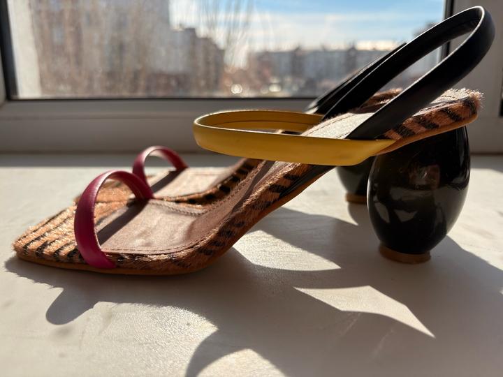 Турецкого производства босоножки в отличном состоянии. Один раз носила. На лето самое то. Яркий,сочный цвет. Интересный каблук. Леопардовые вставки.37 размер. Без коробки. Артикул: 507957