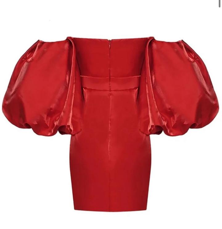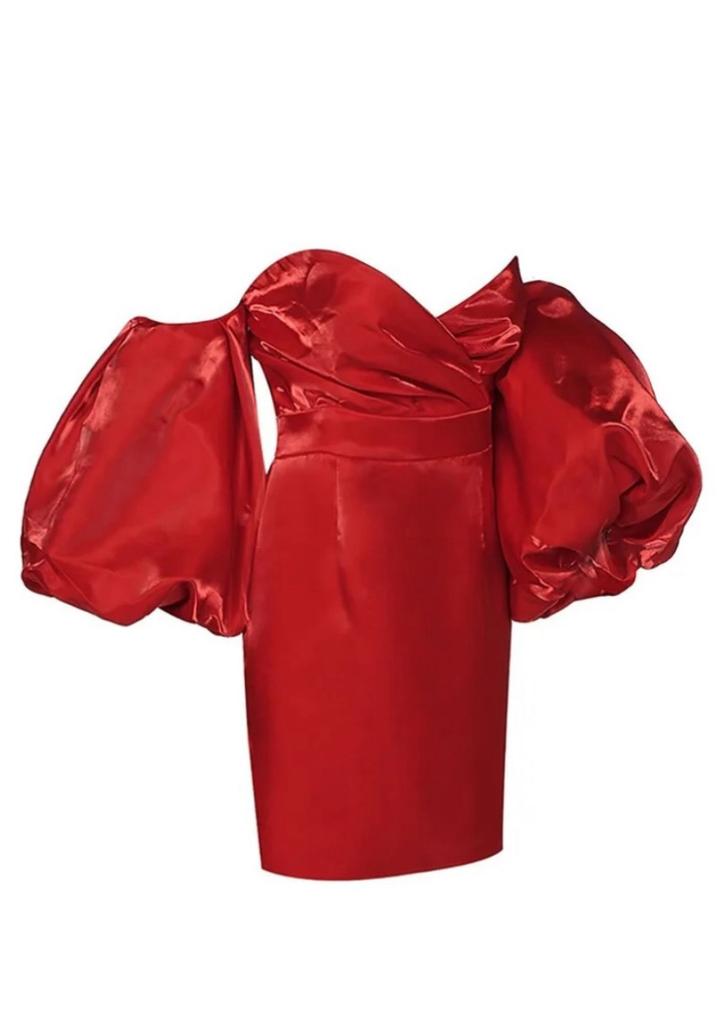 SATIN PUFF SLEEVE MINI DRESS IN REDS/M