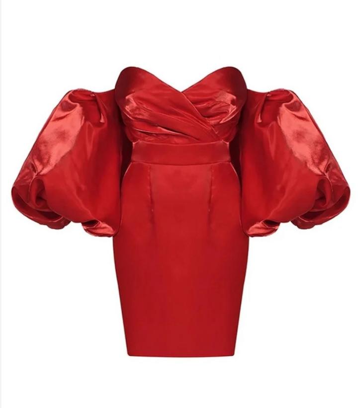 Атласное мини-платье с пышными рукавами, красное. Артикул: 507983