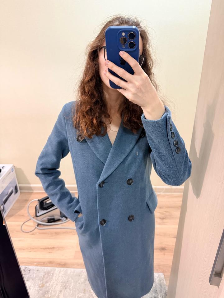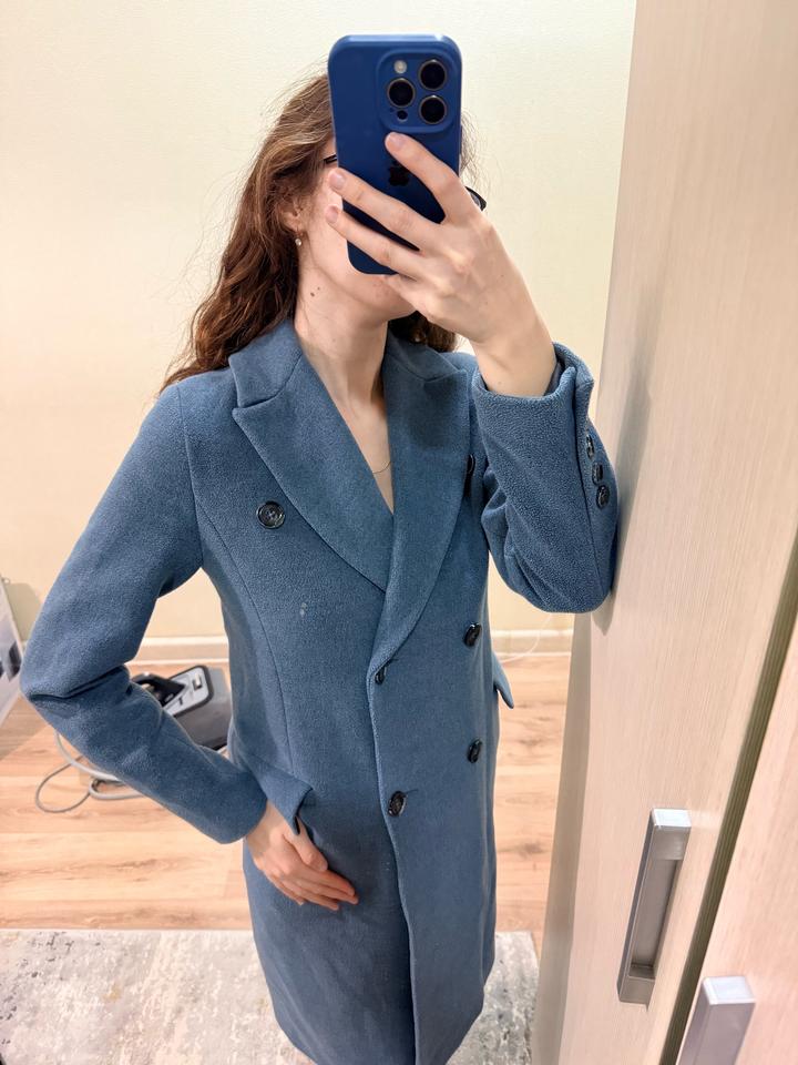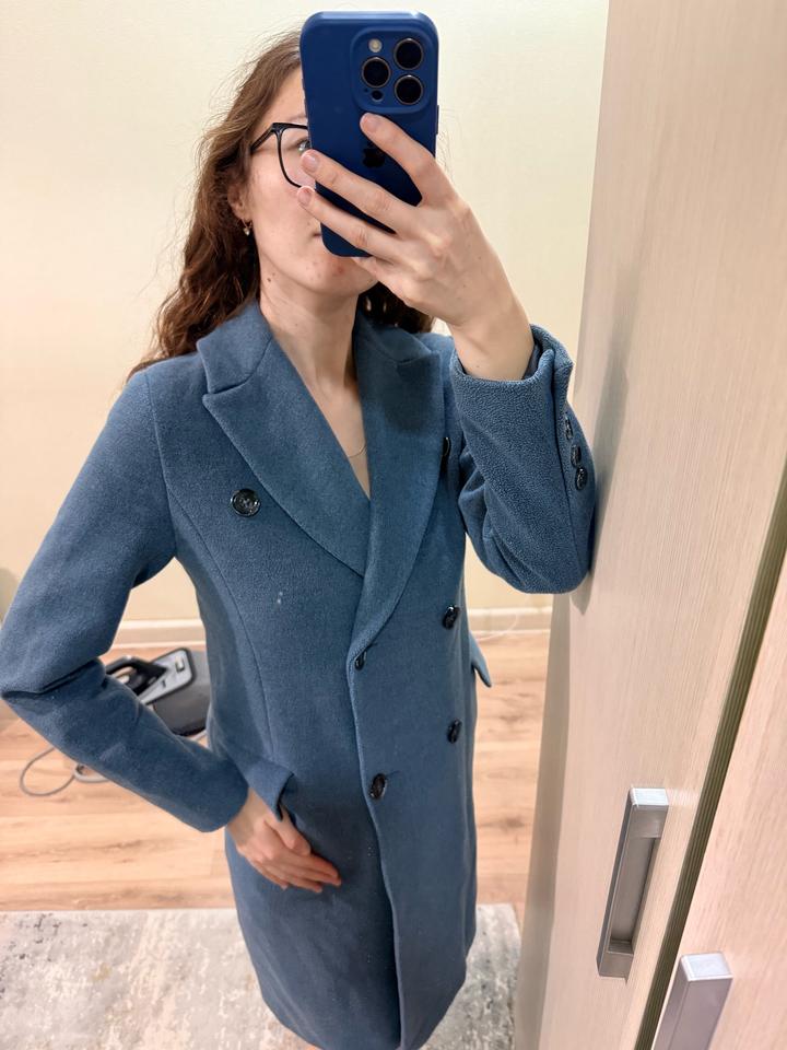 Женское пальто в хорошем состоянии . На рост 165 см длина до колена ( скрывает колени ) . Пальто в хорошем состоянии , цвет синий , подойдет на 42 размер . Подклад целый , карманы рабочие , пуговицы хорошо зафиксированы , не болтаются . Доставки нет, самовывоз . Подробнее в ватс ап Артикул: 507993