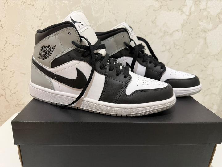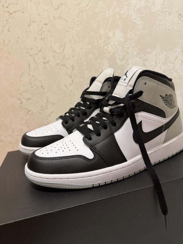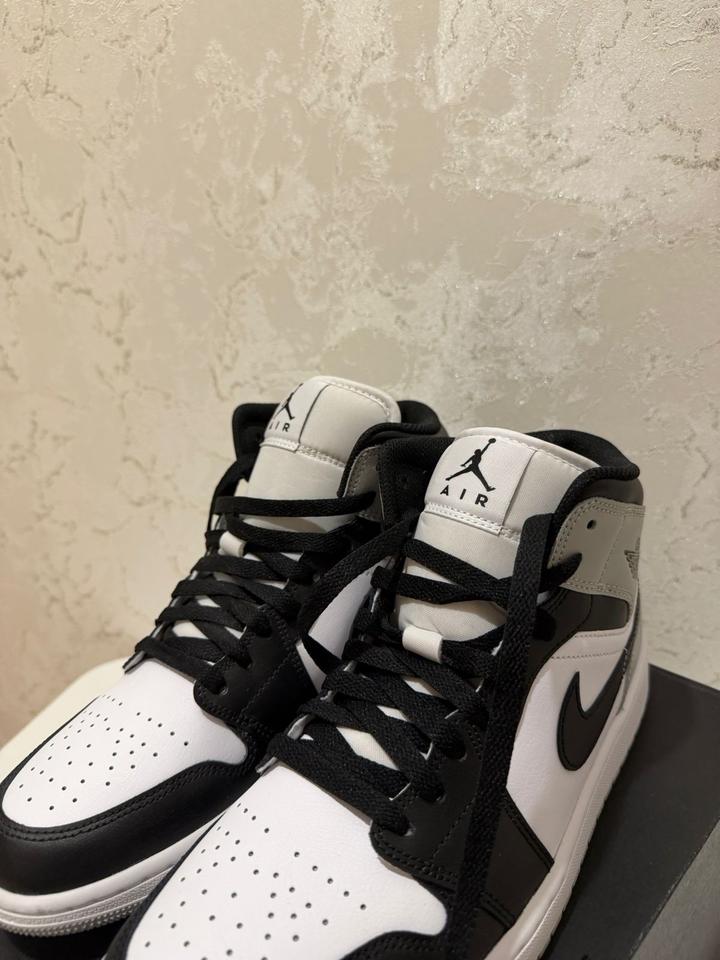 Серые (белый+черный) кроссовки Air Jordan Mid. Оригинальные, покупал на сайте, не угадал с размером. Размер 9,5US, 43 EUR. Артикул: 507997