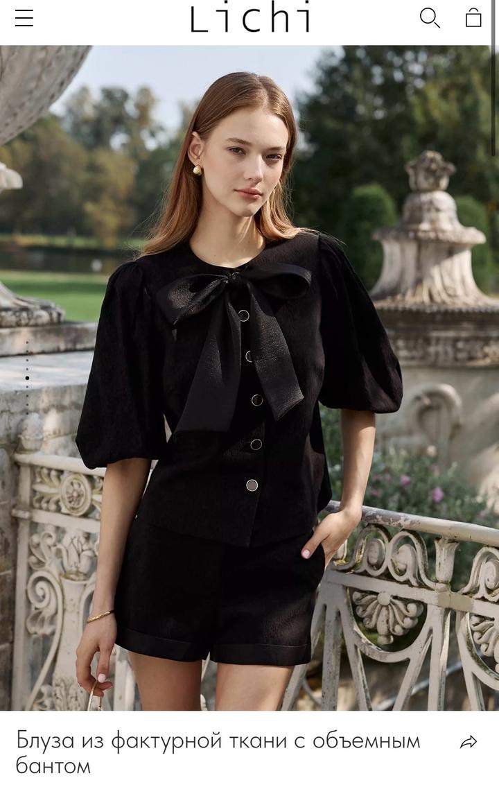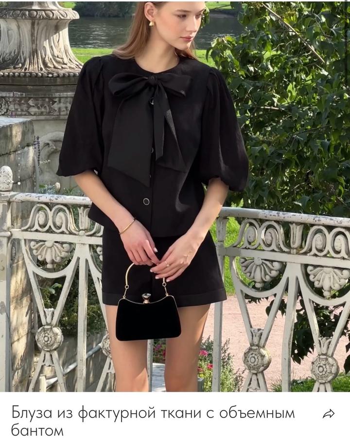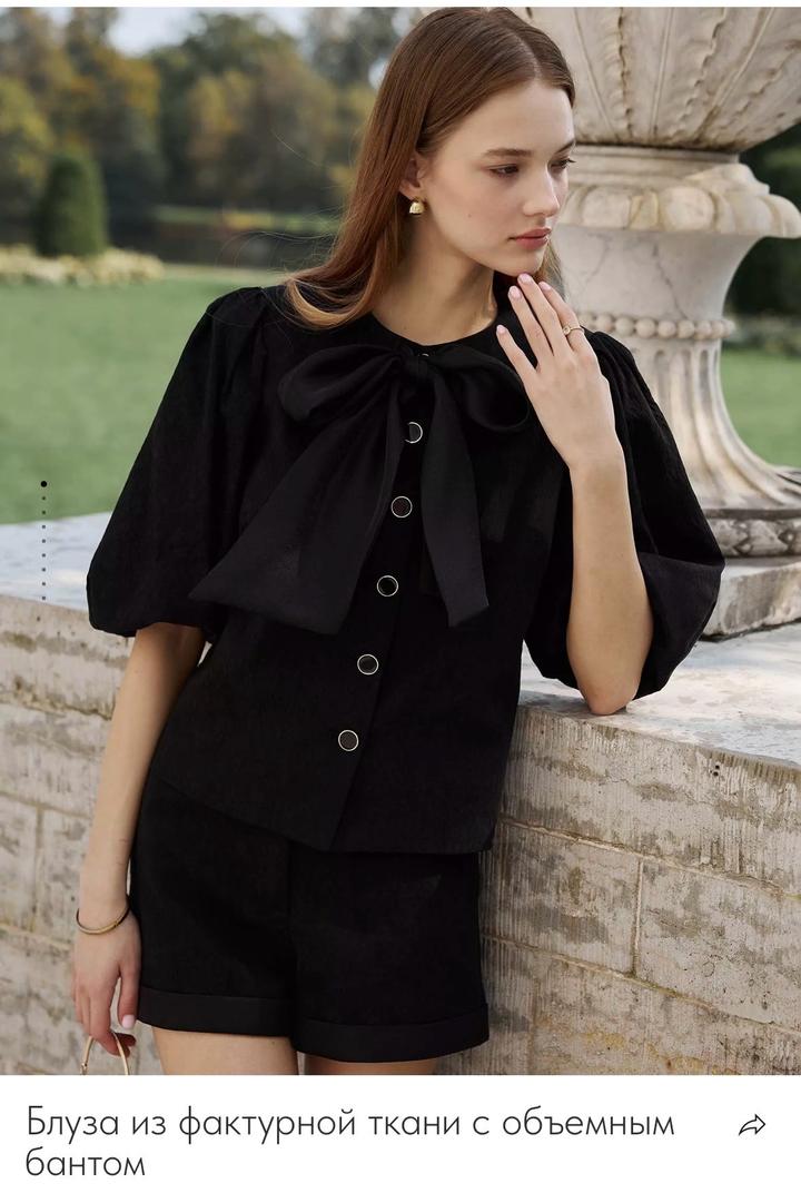 Блуза из фактурной ткани с объемным бантом Артикул: 508112