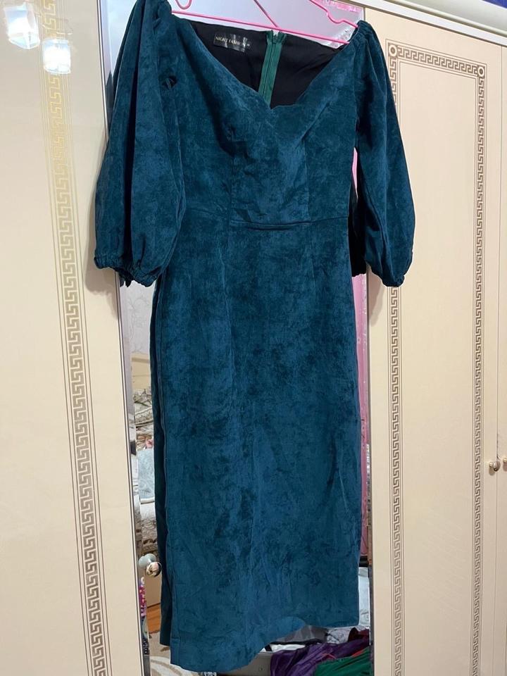 Элегантное дизайнерское вельветовое платье изумрудного цвета 💚 Мягкая ткань с мелким рубчиком, красиво подчёркивает фигуру. Открытые плечи, длина миди — идеально для вечера и особых случаев. Состояние отличное, пожходит на s-m Артикул: 508165