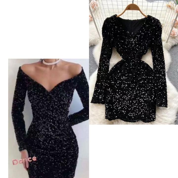 Черное платье в пайетку на подкладе. Тянется, поэтому подойдет на фигуру от XS-S до S-M. Очень короткое и с декольте. Выглядит очень вызывающе) Артикул: 508316