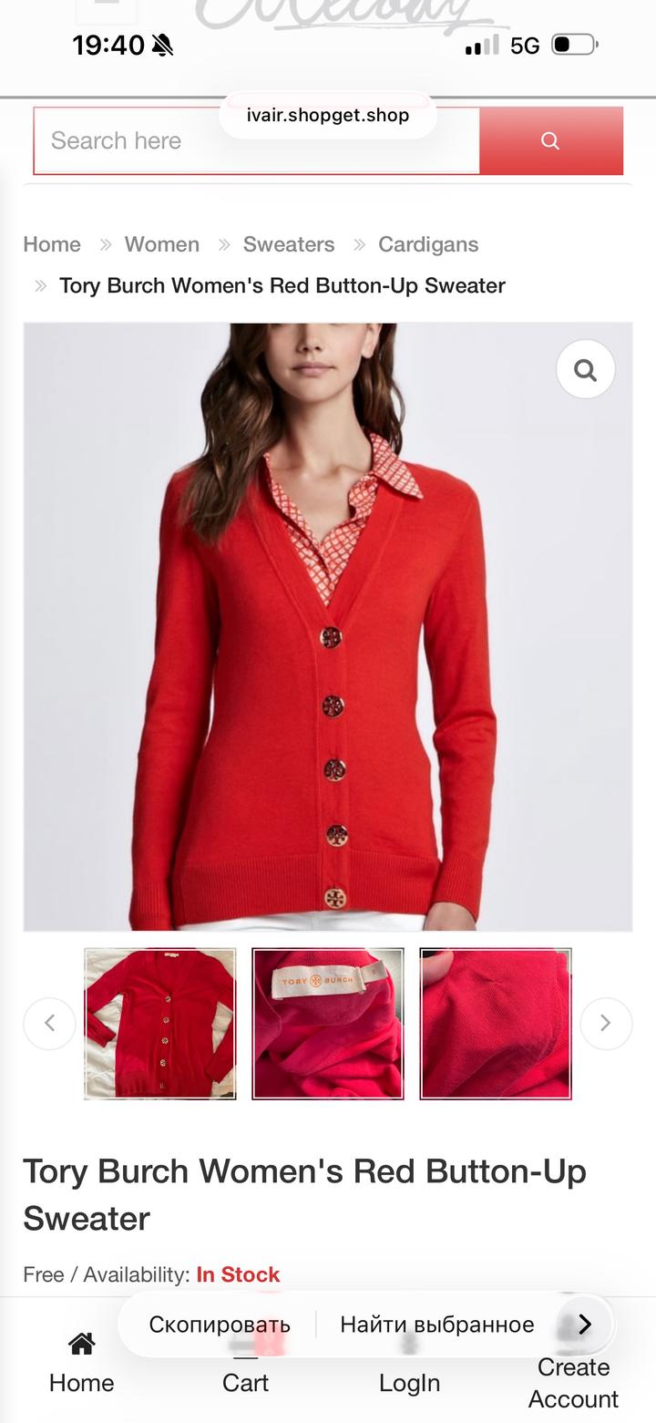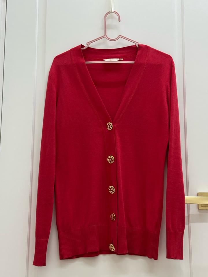 Женский красный свитер на пуговицах от Tory Burch. Размер S.S