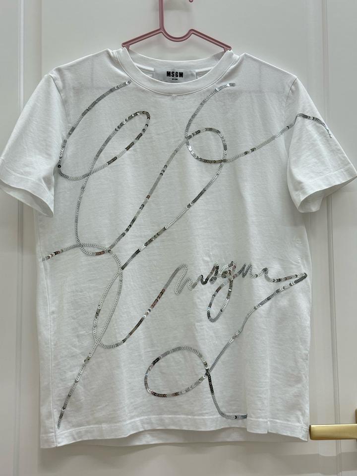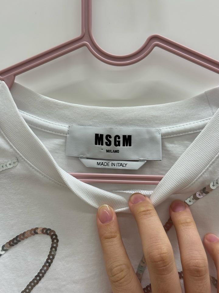 Футболка MSGM с коротким рукавом из хлопка с логотипом. Украшена логотипом из перемешанных пайеток. Изготовлена из легкого хлопка, это универсальная повседневная вещь, которая хорошо сочетается с джинсами, брюками и другой одеждой. Не люблю пайетки вот и продаю. Артикул: 508365