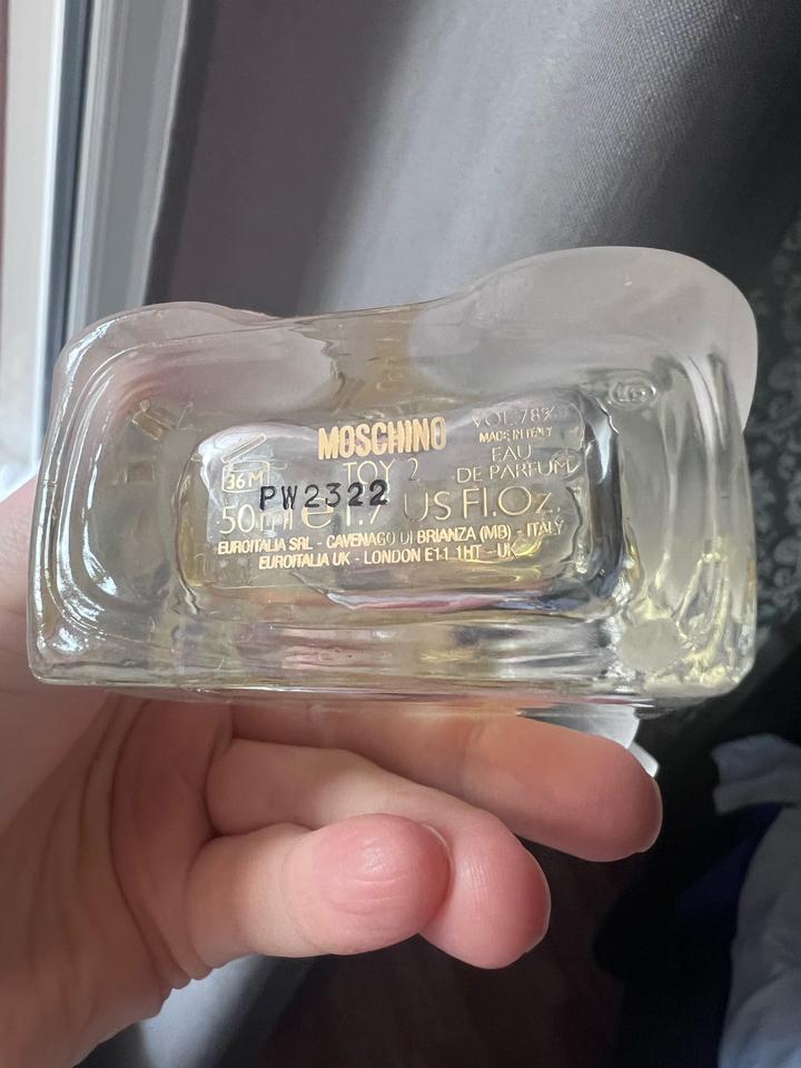 Продам оригинальный парфюм Moschino Toy 2 в культовом флаконе-мишке. Аромат свежий, чистый, с нотами яблока, магнолии и белого мускуса. Идеальный вариант на весну и лето. Остаток около 30–35 мл из 50 мл (точный уровень виден на фото) • Концентрация: Eau de Parfum (Парфюмерная вода). • Батч-код: PW2322 (производство Италия, Euroitalia). Без коробки, только флакон Покупался в в магазине на каспи parfume kz Артикул: 508495