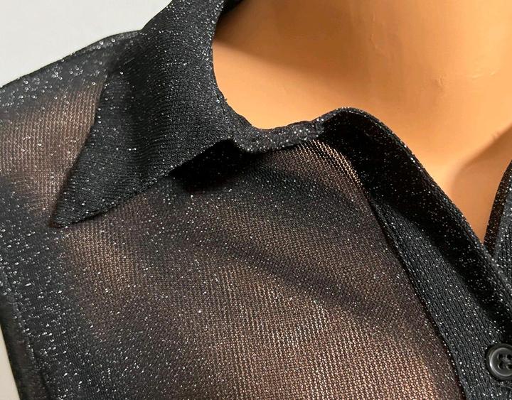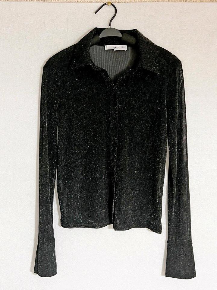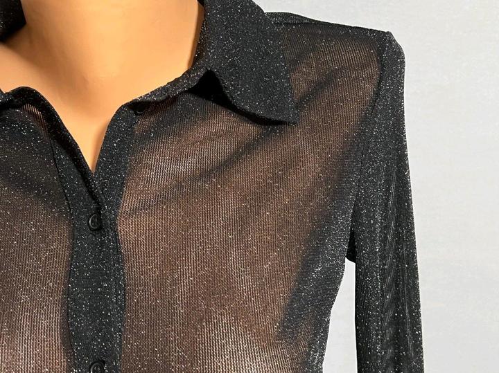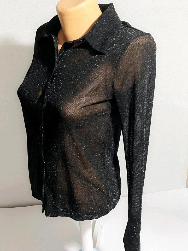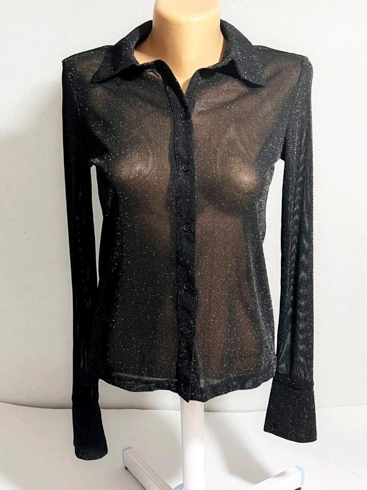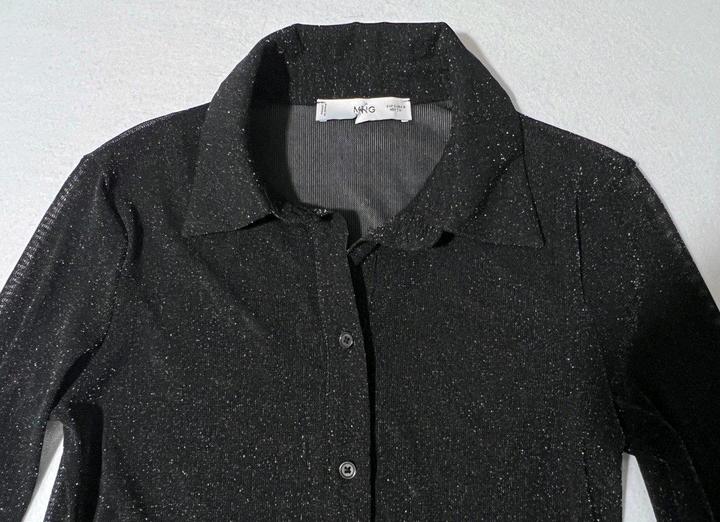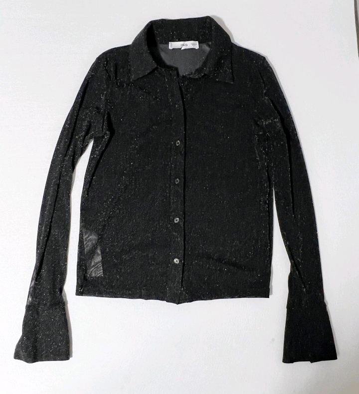 Блузка Mango р S/M 44-46 топ черный с блеском полупрозрачный рубашкаS/M