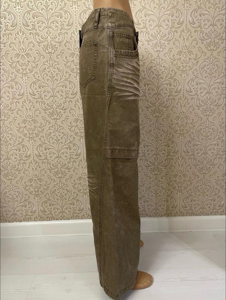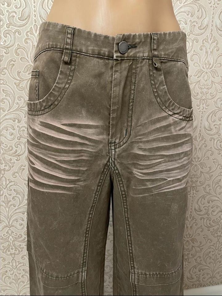 Трендовые джинсы лондонского бренда NUTH. Прямой крой, стильный винтажный оттенок хаки. Плотный качественный деним,отлично сидят и держат форму. Смотрятся дорого, легко вписываются в базовый гардероб. Артикул: 508694