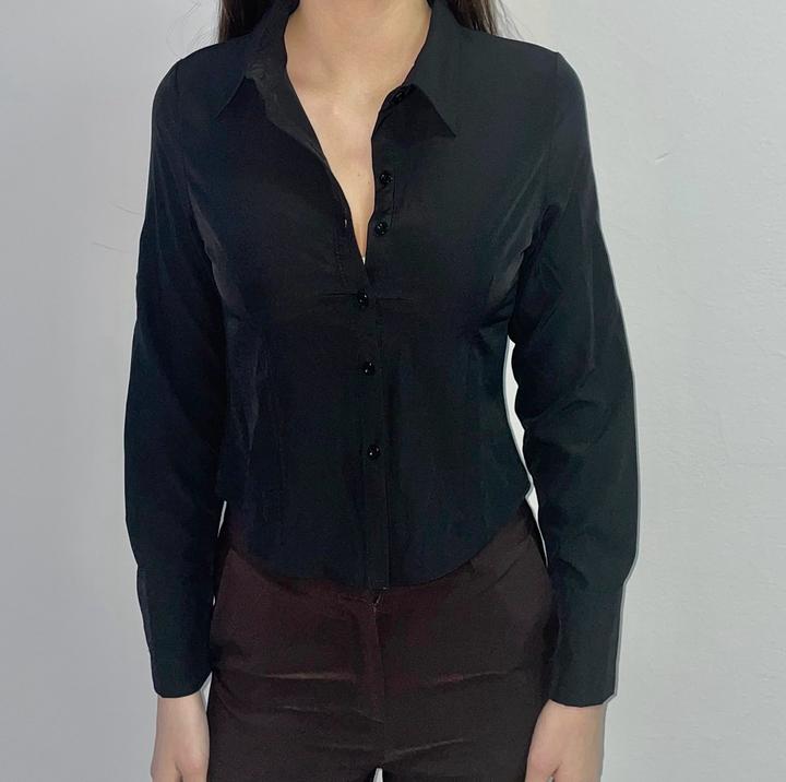 Черная приталенная рубашкаS