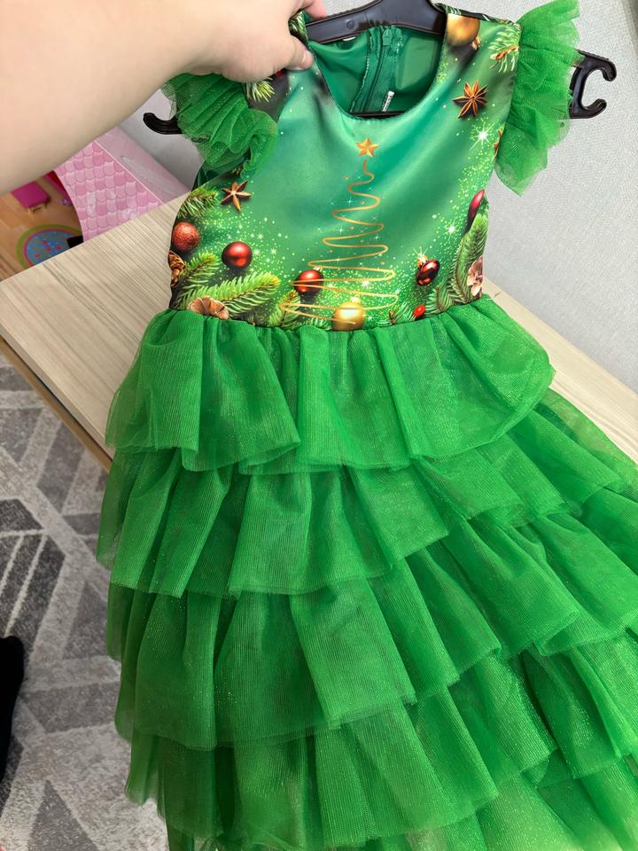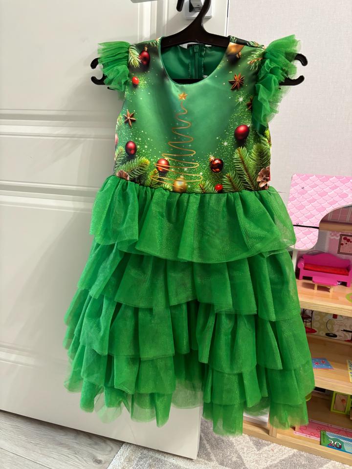 Зеленое новогоднее платье для девочки возраст на 5-6 лет, на худенькую девочку будет сидеть отлично . Брали на утренник Артикул: 509085
