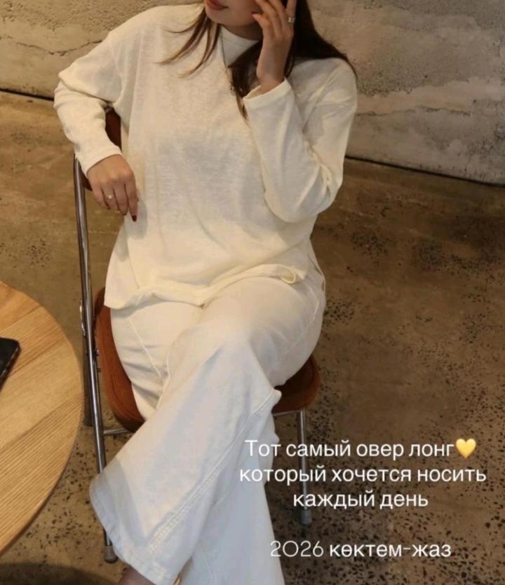 Базовый лонг на каждый день,в отличном качестве: натуральный состав, ткань дышит, никакого полиэстера, держит форму(не хлипкий), В нежном пастельном цвете сливочного масла, Onesize, Unisex, на рост от 165см. Больше одежды- в моем профиле Артикул: 509162