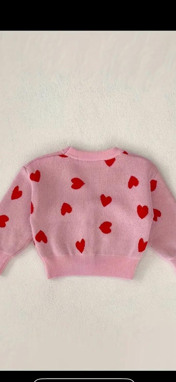 Новое детское одежда для девочек на весну и осень розовая вязаная кардиган с V-образным вырезом в форме сердца, идеально подходит для малышей и детей. Очаровательный свитер для девочек, идеальный наряд Артикул: 509174