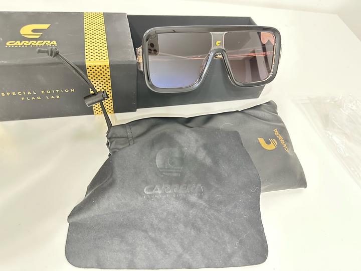 Солнцезащитные очки Carrera пр-во Италия, оригинал. Покупала через сайт. Черный, ацетат, мраморный узор, градиентные линзы, маска, широкая модель, золотистый металлический логотип, золотистый логотип и золотистая фурнитура. В комплект входит защитный чехол для очков и пыльник. На широкое лицо подойдут Артикул: 509287