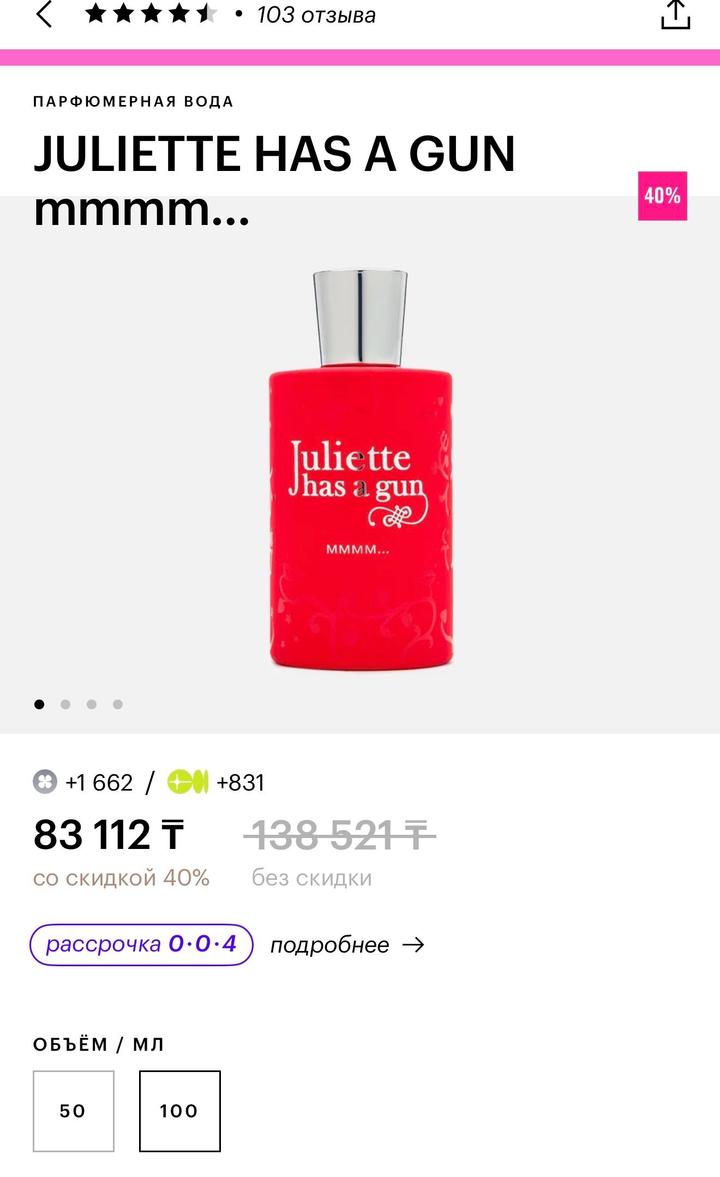 Juliette Has A Gun Mmmm… — вкусный нишевый аромат (≈80 мл остаток) Тот самый аромат, который хочется «съесть» 😍 Сладкий, тёплый, очень женственный — с нотами ванили, карамели и фруктов. Получаю на него комплименты постоянно! Оригинал, не копия. Во флаконе осталось около 80 мл — хватит надолго. ✨ Отлично подойдёт на каждый день и на вечер ✨ Держится хорошо, раскрывается мягко и уютно ✨ Идеален для любителей сладких гурманских ароматов Флакон Артикул: 509628