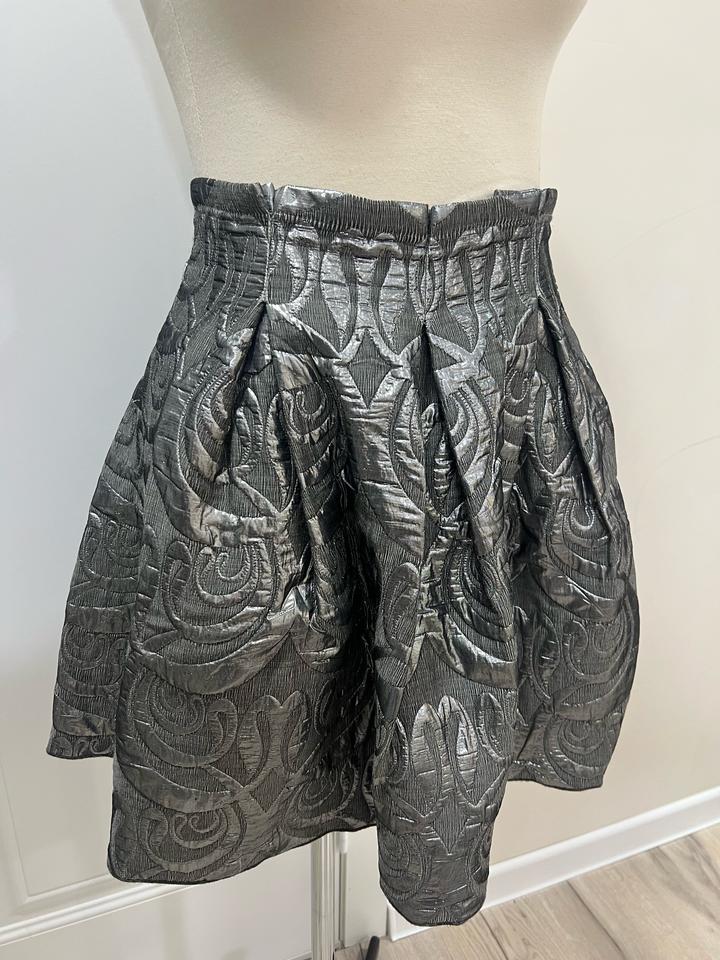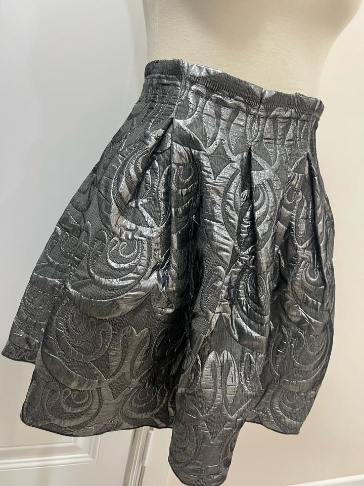 Юбка от бренда D.Exterior, оригинал, итальянский премиум бренд. Размер S. Состояние отличное. Выполнена в серебристо-серых тонах с изящными узорами — элегантная и стильная модель для повседневного и праздничного образа. Артикул: 509649