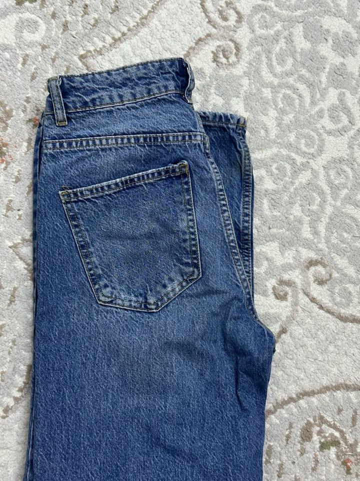 Zara джинсы темно синие немного трубы ,посадка средняя . Цвет на все сезоны,размер xs/s Артикул: 509659