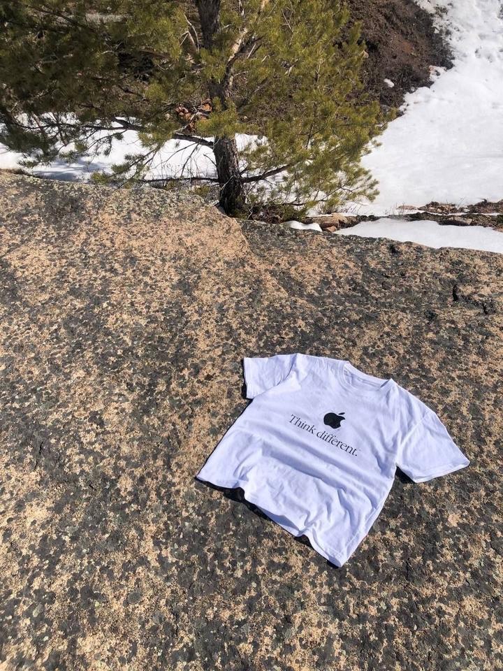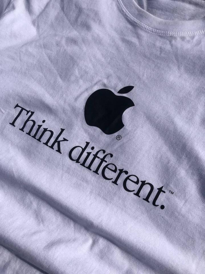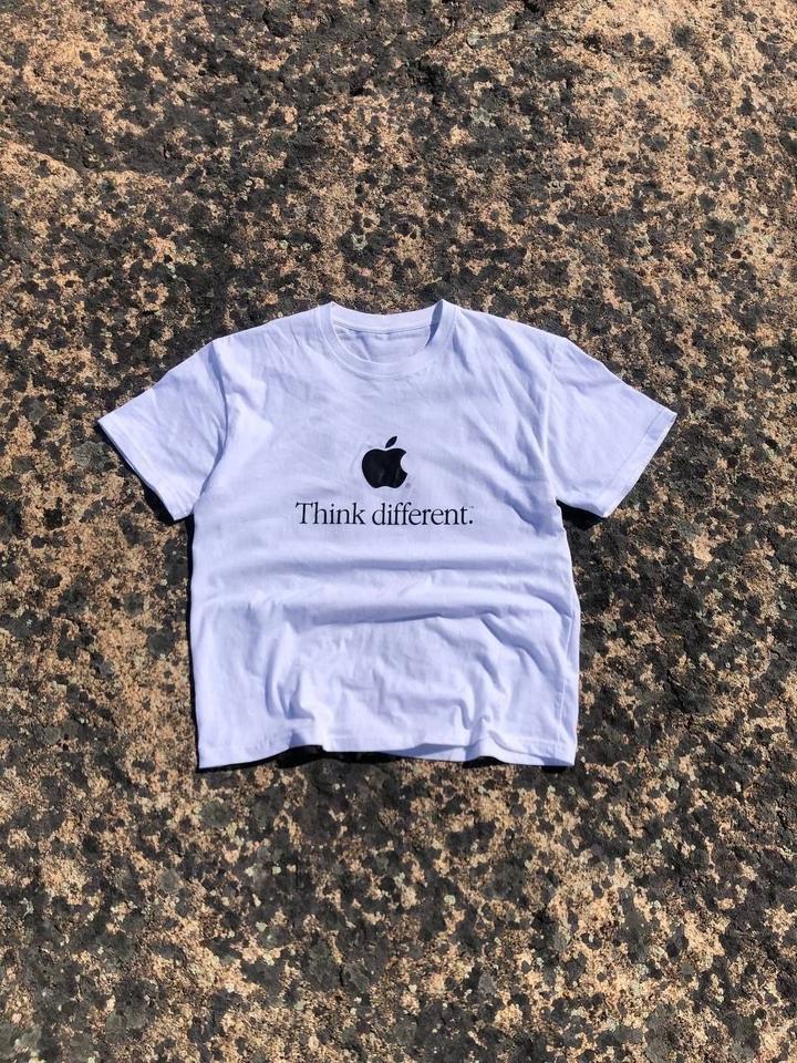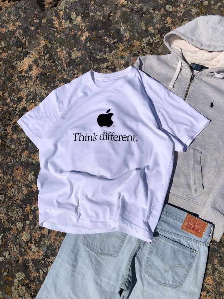 Белая хлопковая футболка Apple «Think Different» (M). Принт чёткий, вещь в идеальном состоянии — будто только из магазина. Цена 9500 тг. Артикул: 509802