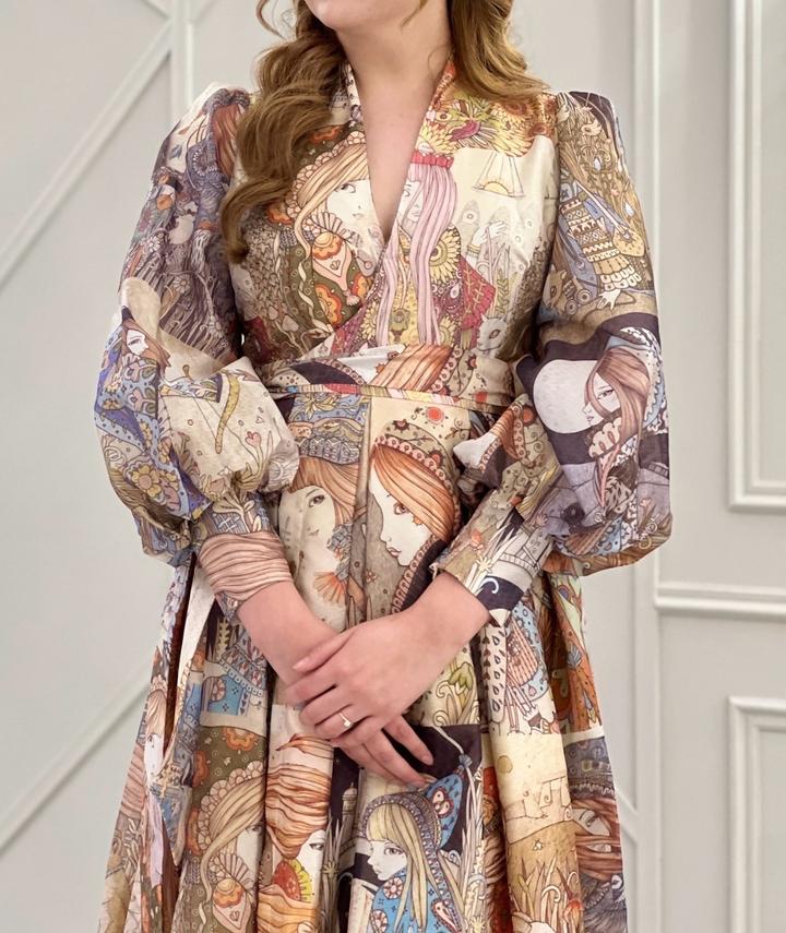 ✨ Стильное платье с дизайнерским принтом ✨ Элегантное миди-платье с акцентом на талии и объемными рукавами. Смотрится дорого и женственно, идеально для мероприятий и выходов. Состояние: как новое (надето 1 раз) Уникальный принт Длина: миди Покупала за 65 000 ₸ Цена: 50 000 ₸ Артикул: 509853