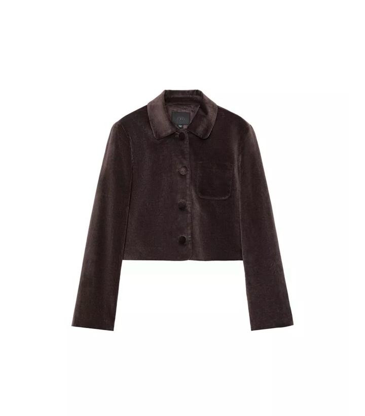 Укороченный блейзер Zara, материал бархат, цвет темно-коричневый. Новый с этикеткой. Размер XL, цена скидочная Артикул: 509872