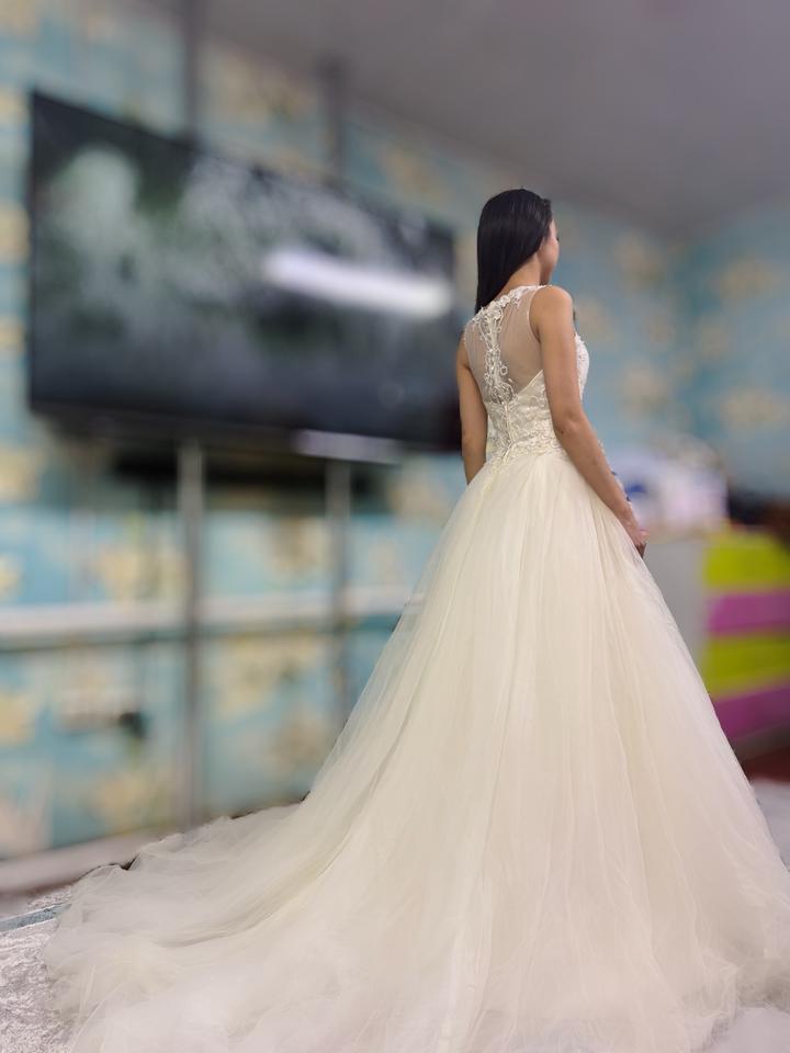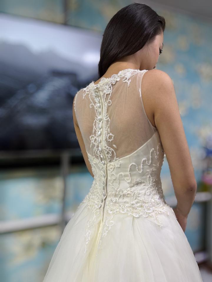 Свадебное платье айвори пышное 44–46 ручная работа со шлейфомOne size