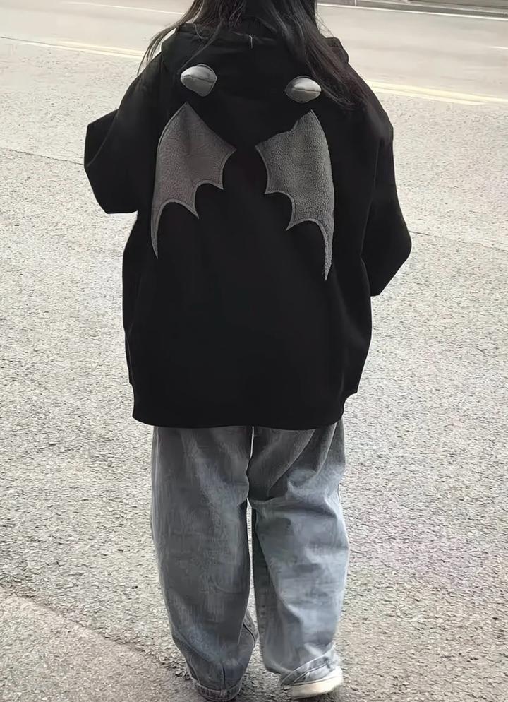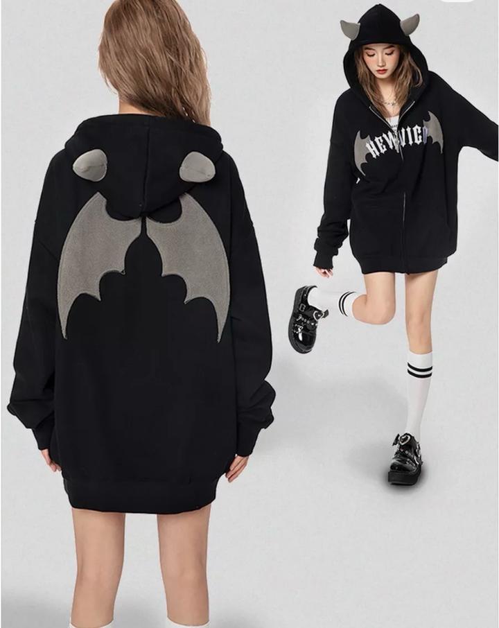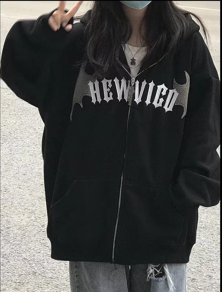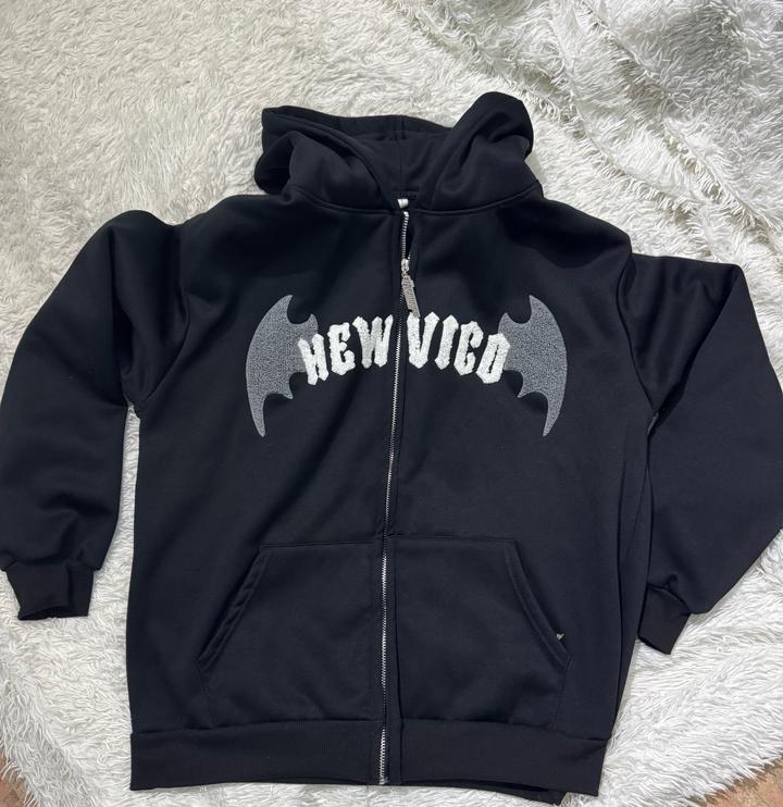 черная зип-худи унисекс от бренда New Vico, выполненная в стиле Y2K/панк-рок с декоративными элементами в виде крыльев. Почти как новая. Не скатывается. Артикул: 509989