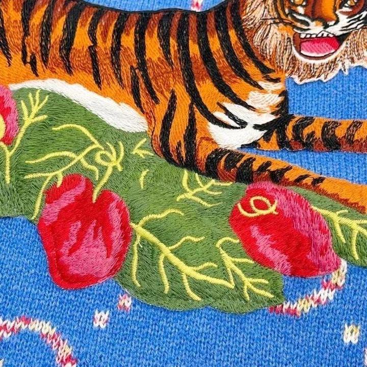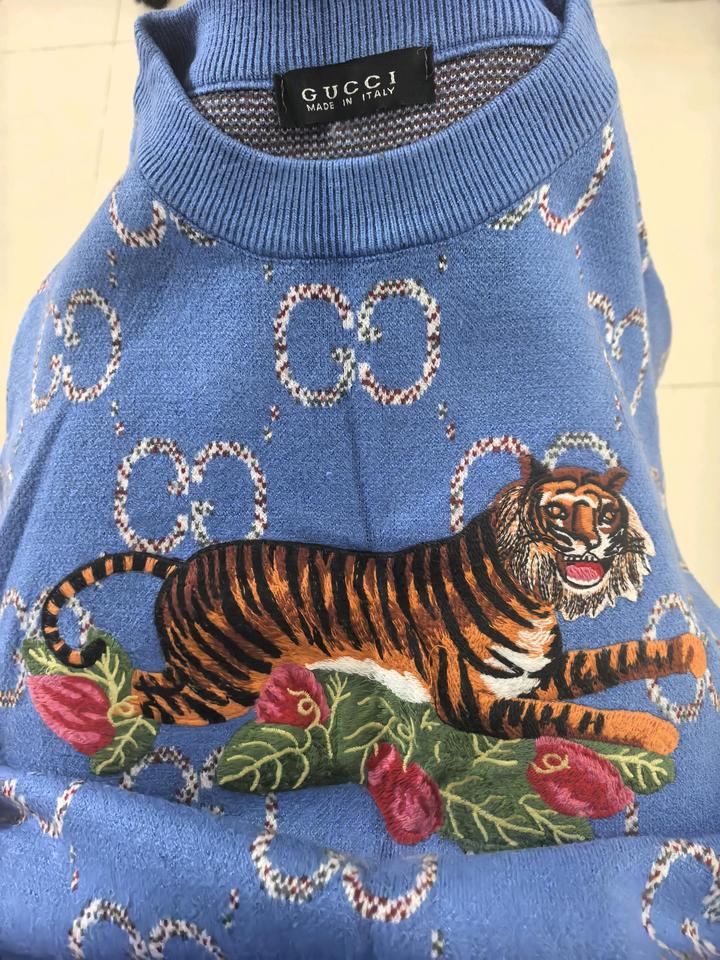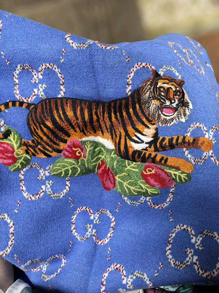 Джемпер трикотажный под Gucci, очень интересный кобальтовый цвет, красивый яркий качественный принт, теплый, носилась недолго. Размер до S-М. Артикул: 510001