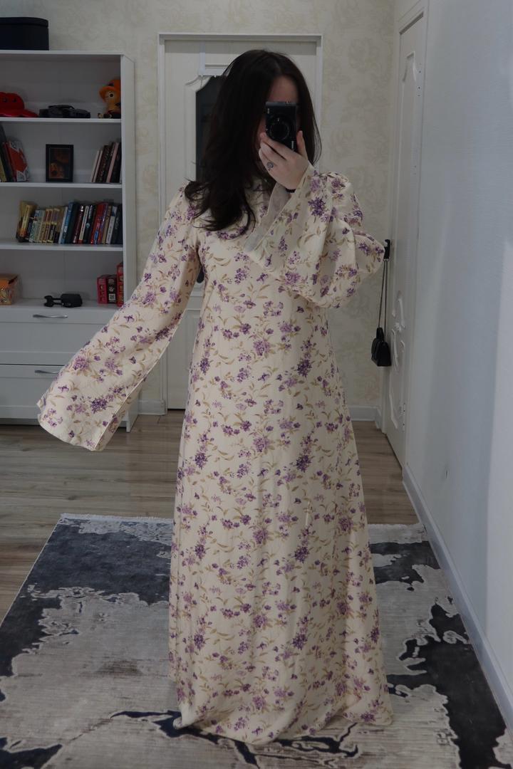 Нежное длинное платье с цветочным принтом 🌸 Лёгкая струящаяся ткань, красиво сидит по фигуре. Есть пояс-верёвочка из той же ткани, можно носить свободно или подчеркнуть талию. Есть подклад, платье не просвечивает. Подойдёт для покрытых девушек. Рукава расклёшенные, очень женственный и аккуратный силуэт. Идеально на весну/лето, для прогулок, фотосессий или мероприятий. Состояние отличное, ниразу не надевала, покупала в шоуруме в г. Грозный Артикул: 510161