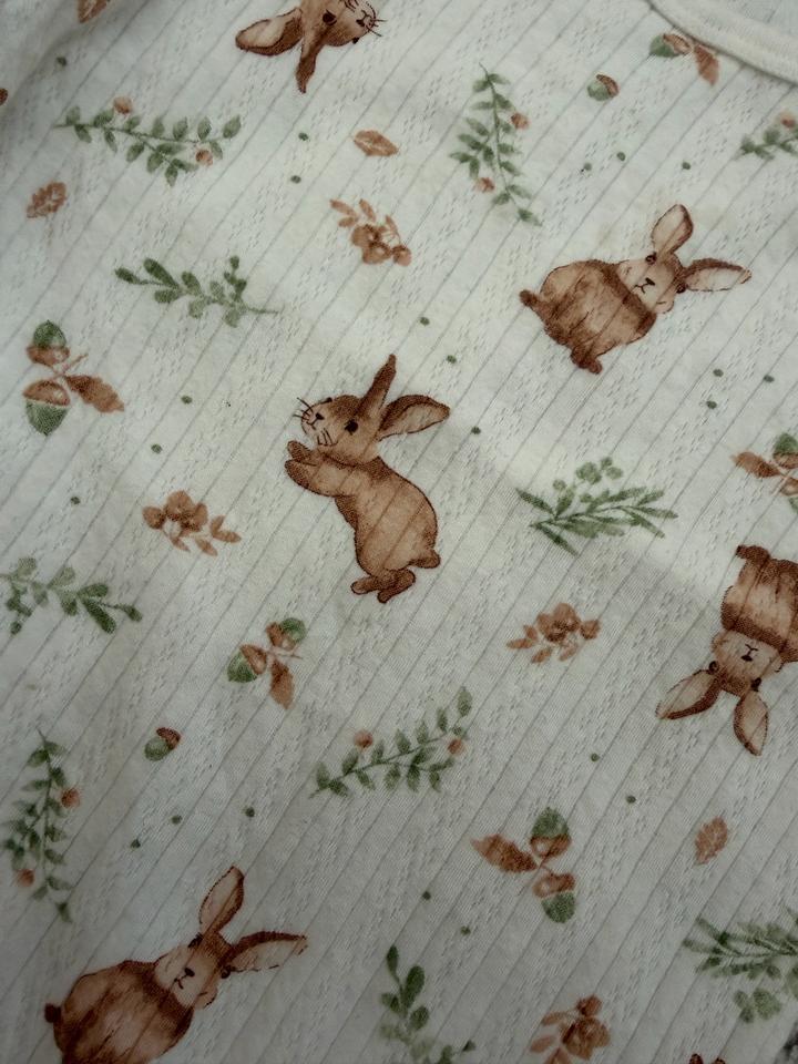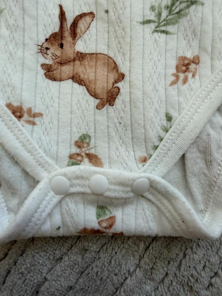 Бодик лапша отличного качества с чудесным принтом зайчика в идеальном состоянии. Верх горловина на кнопках. Артикул: 510325