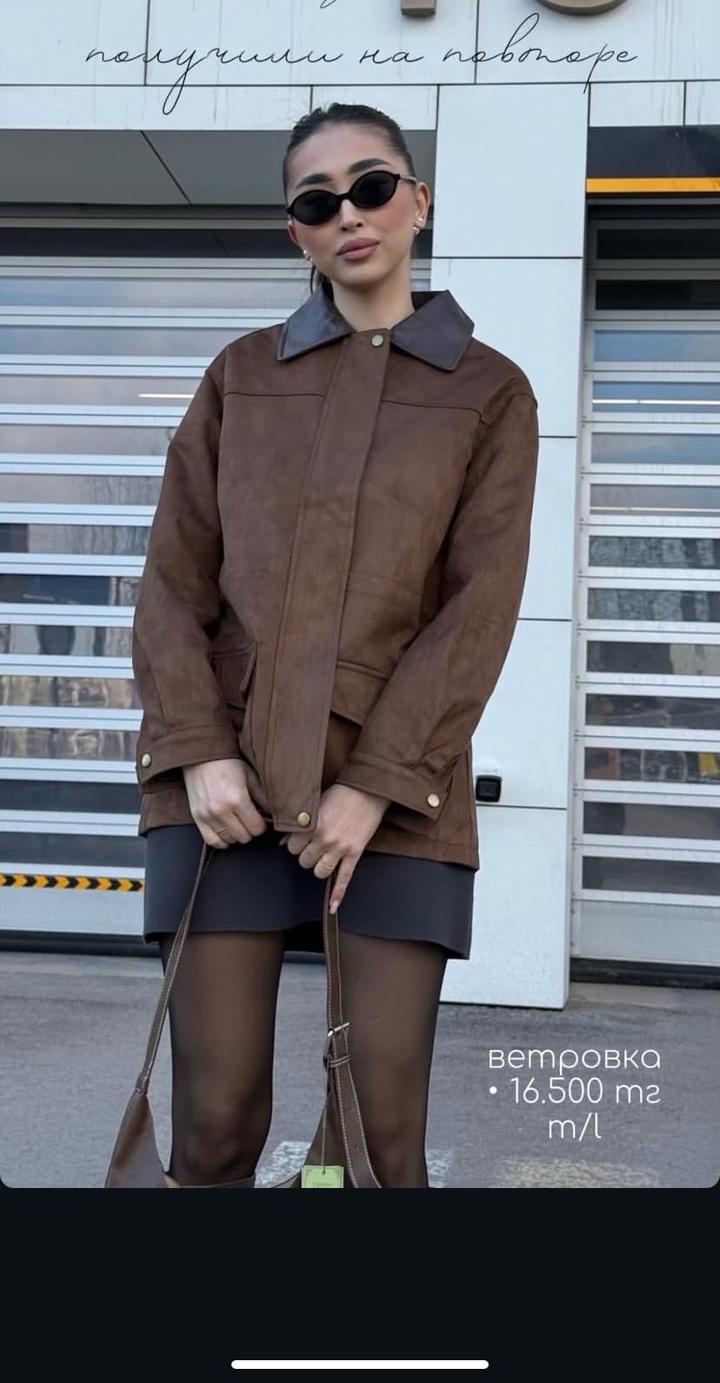 Замш накидка коричневая модная куртка Артикул: 510344