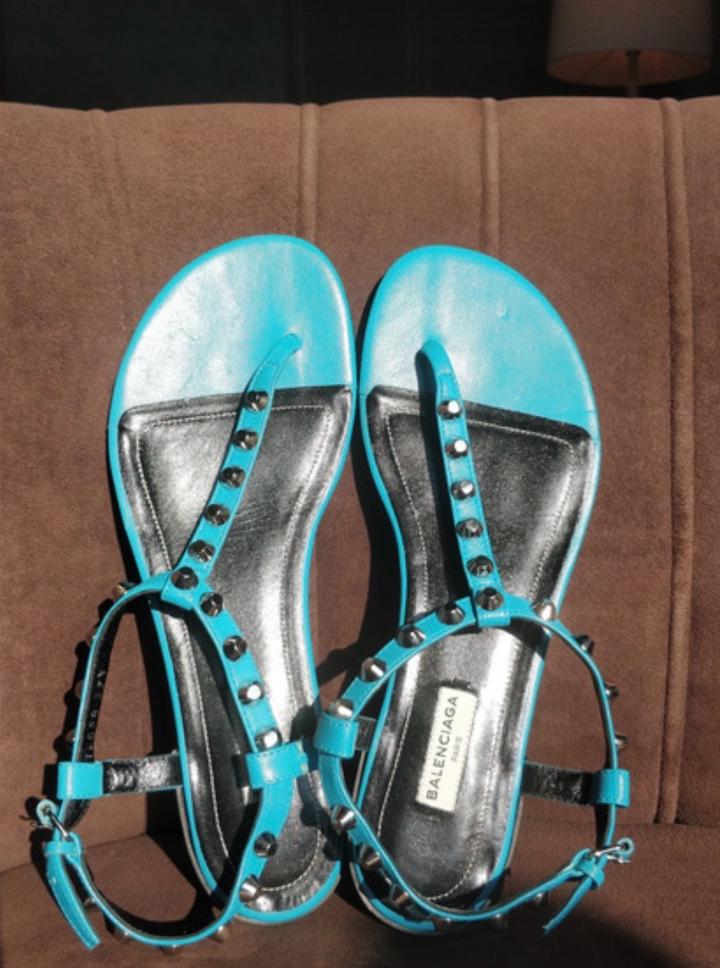 Сандалии Balenciaga с заклёпками и Т-образным ремешком, куплены в официальном магазине во Флоренции за +7### ### ## ##подошве. Артикул: 510478