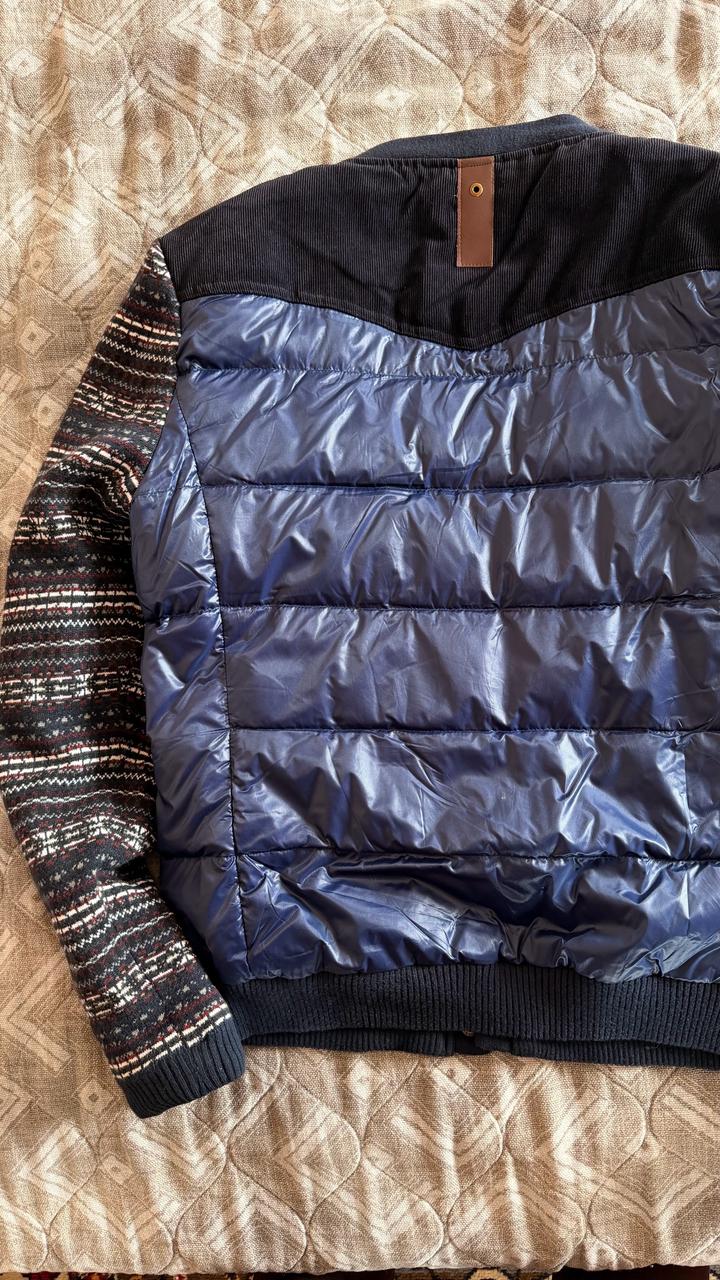 Мужской необычный пуховик, 50 размера, внутри пух, довольно теплый, красивые винтажные кнопки, носился очень мало, следов носки не видно. К сожалению стал маленький, поэтому продаю. Артикул: 510565