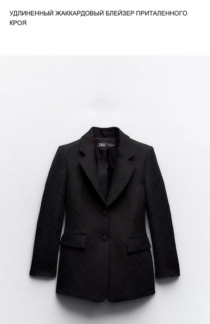 Классический костюм Zara из фактурной ткани - удлиненный жаккардовый блейзер и жаккардовые брюки. Блейзер размер С-М, оверсайз модель. Брюки хорошо подходят на размер С, книзу немного сужаются Артикул: 510573