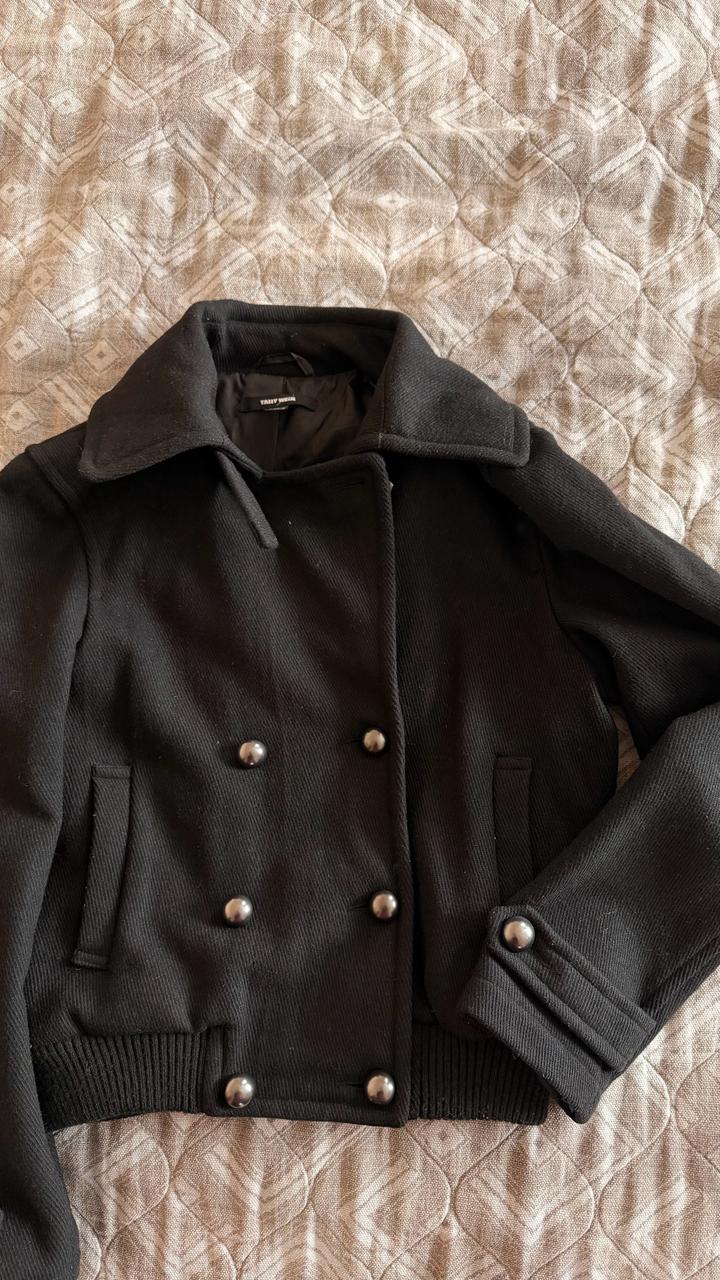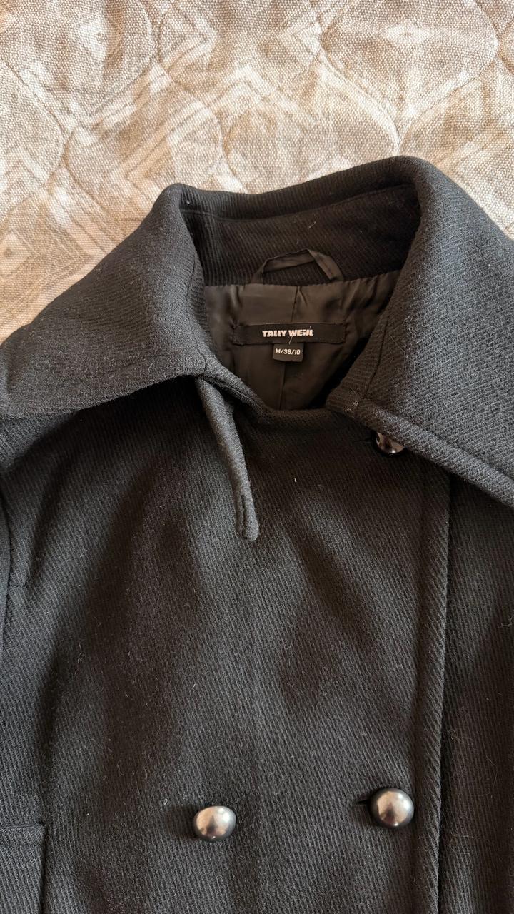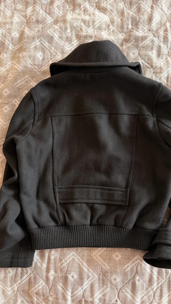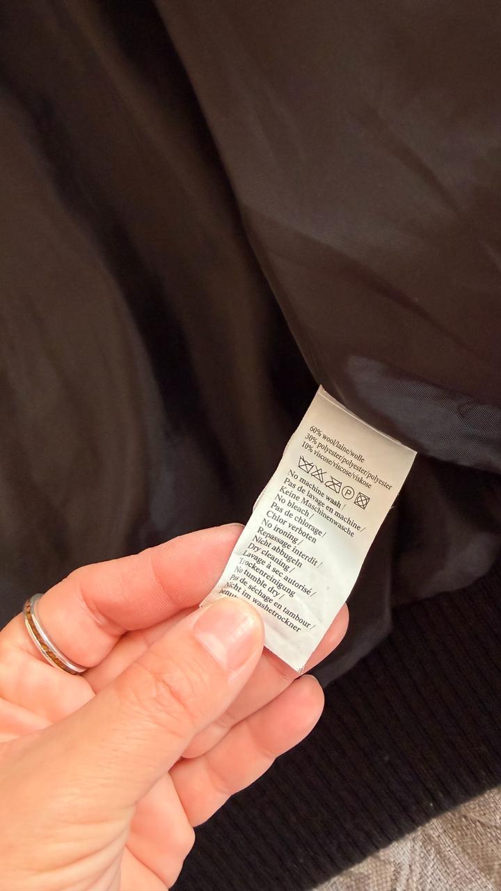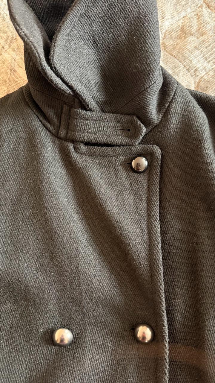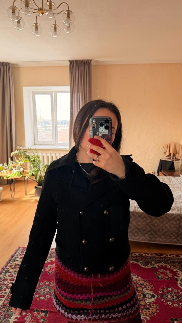Черное пальто бомбер, есть нюанс нет одной пуговки сверху, можно просто купить похожую. В хорошем состоянии, в составе 60% шерсти. Пойдодет до 44 размера, мне к сожалению стало мало. Артикул: 510849