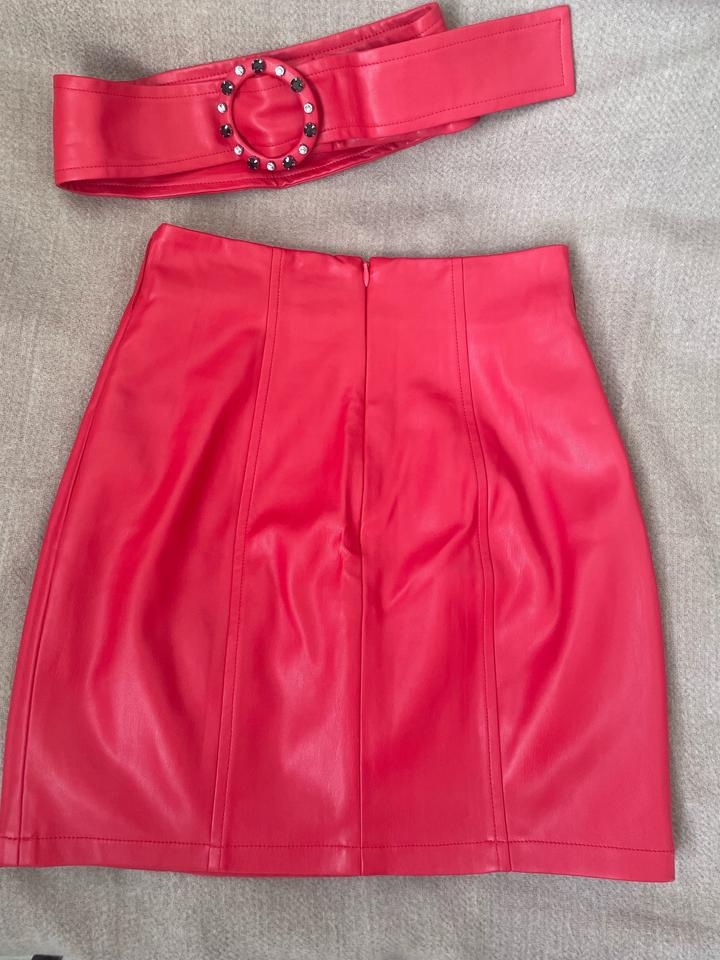Красная кожаная мини юбка, на подкладе. В комплекте есть ремешок, но можно и без него носить. Абсолютно новая, с биркой. Артикул: 510889