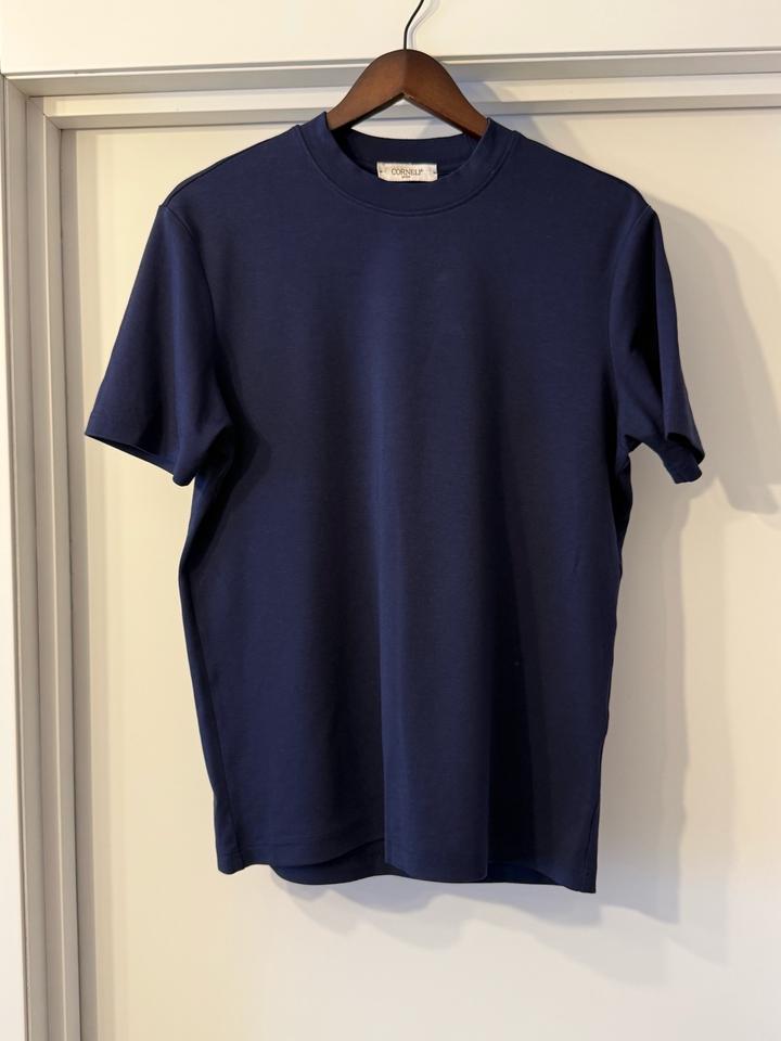 Футболка Corneli с высоким воротом Состояние: Б/у, в хорошем состоянии. Ухоженная вещь, без дефектов. Размер: XL (маломерит, лучше ориентироваться на замеры). Особенности модели: • Ворот: Стильный высокий ворот-стойка (mock neck), плотно прилегает. • Материал: Плотный, качественный трикотаж. Состав (с бирки): 48.1% хлопок, 48.1% модал, 3.8% спандекс. Очень мягкая и эластичная. • Дизайн: Базовый темно-синий цвет, лаконичный крой. Отлично смотрится как самостоятельный элемент или под пиджак. Артикул: 510914