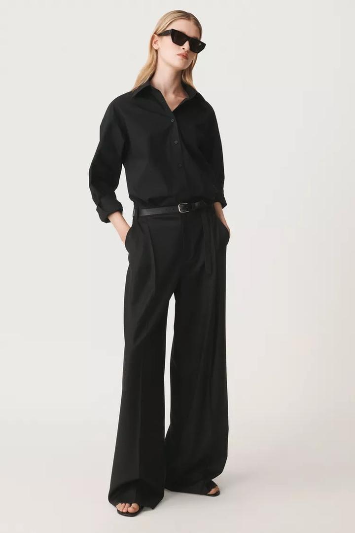 Брюки с высокой посадкой из смесовой шерсти. Шлевки, защипы. Боковые карманы, декоративные прорезные карманы. Пояс с контрастной внутренней стороной и декоративной строчкой. Застежка-молния, металлический крючок и внутренняя пуговица. Артикул: 511057