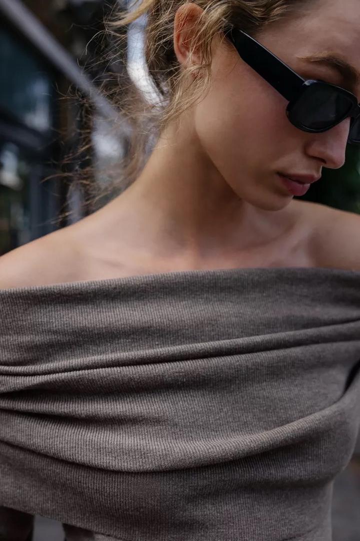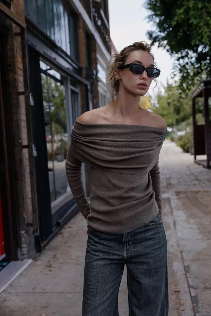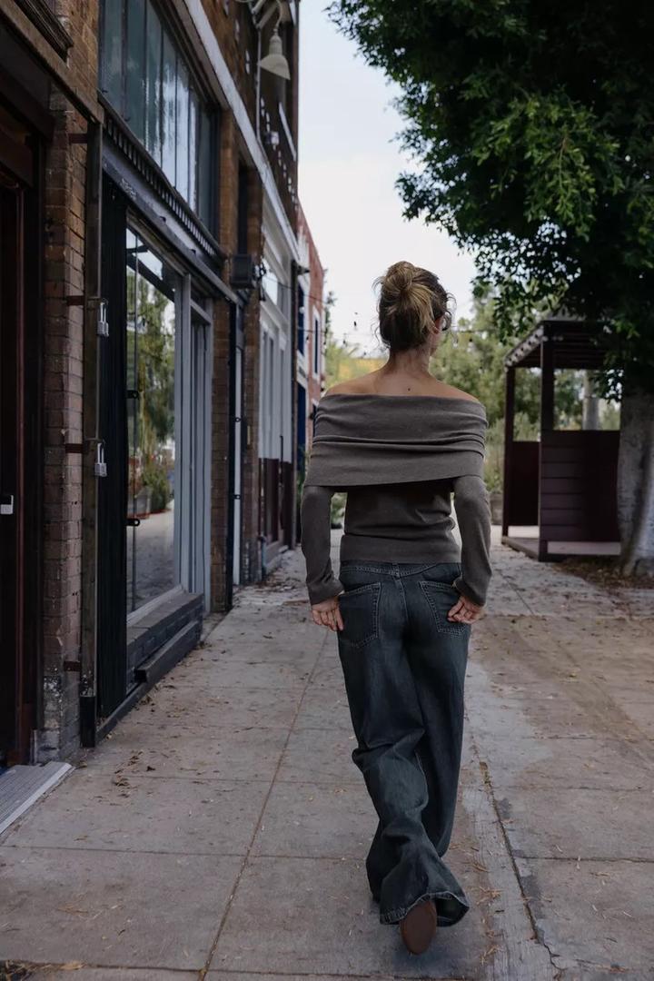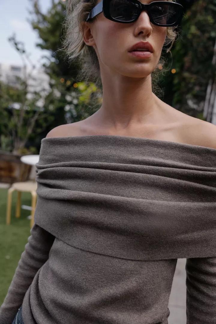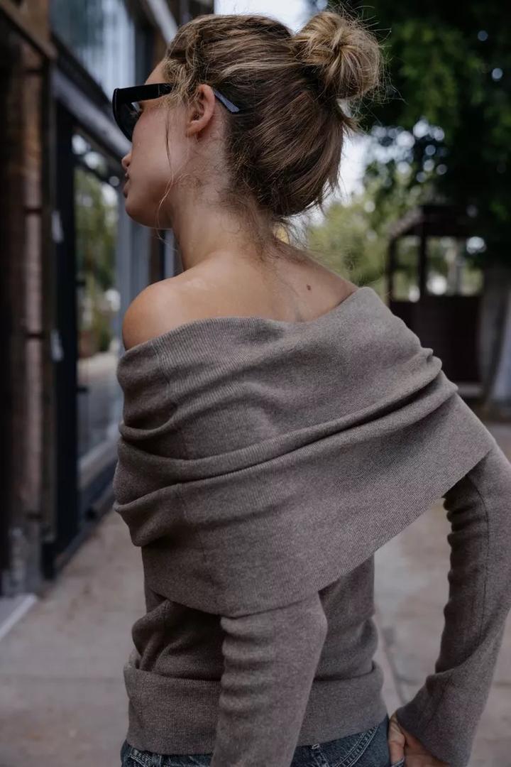 Однотонный вязаный свитер с прямым вырезом с отворотом и длинными рукавами. Мягкая на ощупь ткань. Артикул: 511236