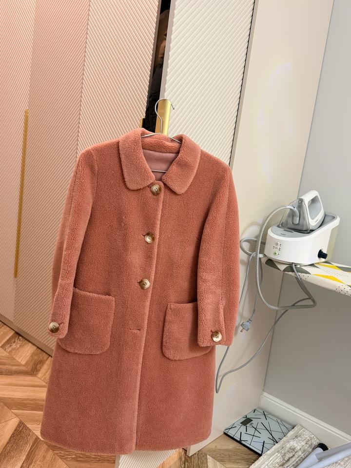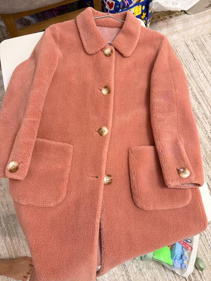 Тедди дубленка отличного качества, персиковый цвет, размер подходит XS/S. Длина чуть ниже колен . После химчистки! Подходит на сезон весна-осень Артикул: 511245