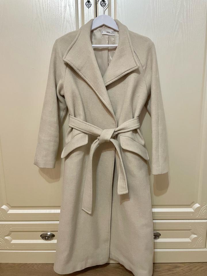 Бежевое пальто Mango. Из шерсти, хорошо сидит и держит форму. Подойдёт на размер XS–S, рост модели 165 см. Состояние хорошее, аккуратно носилось. Подойдёт под любой образ - базовая вещь в гардеробе. Артикул: 511333