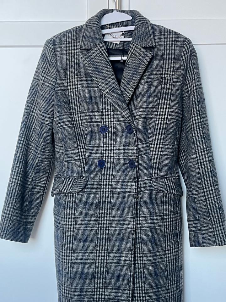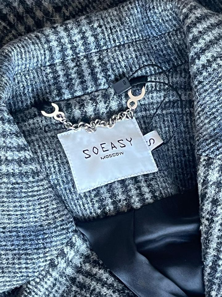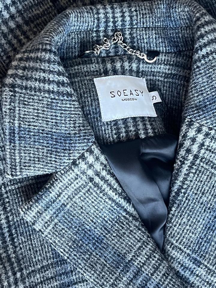 Пальто женское шерстяное в клетку Размер XS Верх 100% шерсть Идеальное состояние Российский бренд SOEASY Moscow Не подошел размер Приталенный фасон Застежки - кнопки Артикул: 511337