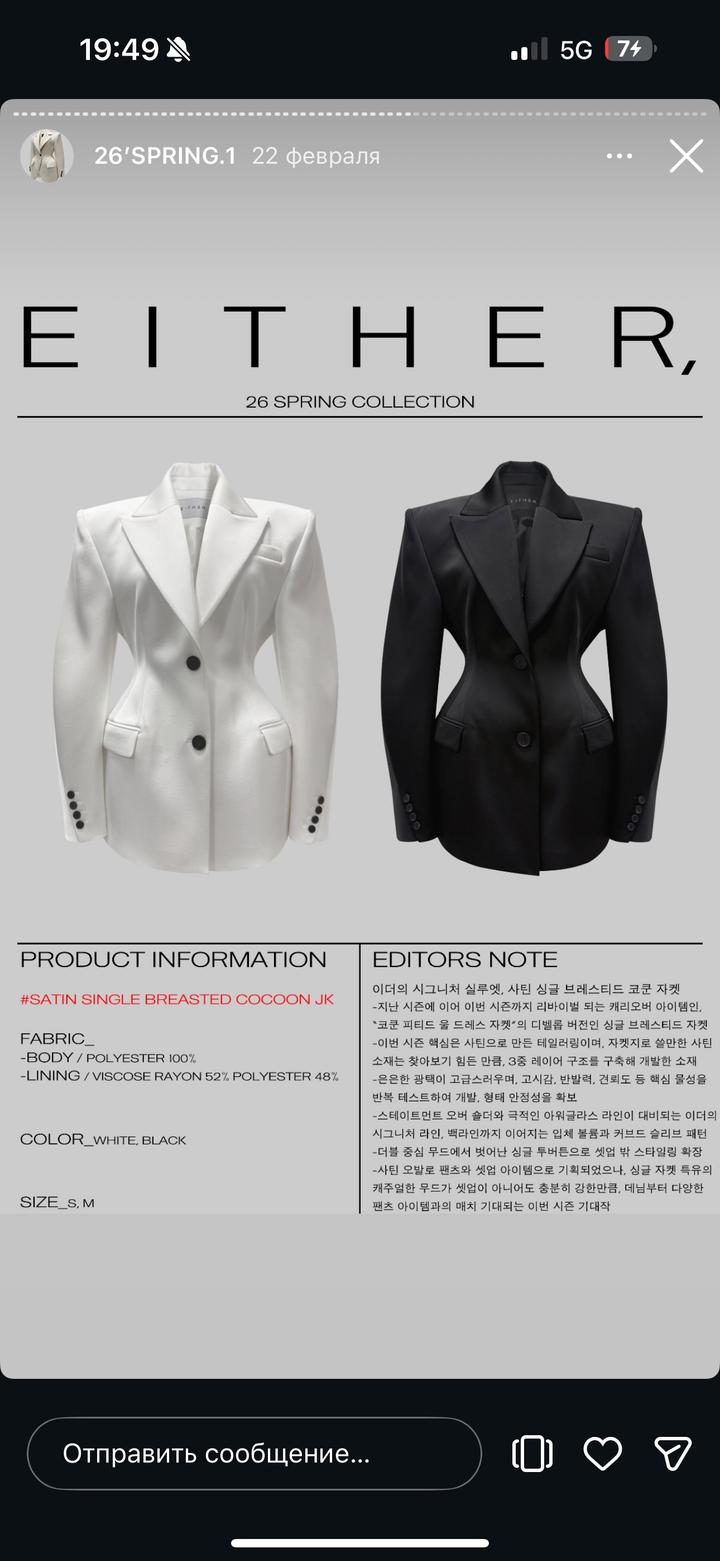 Пиджак айвори бренда Either КореяS
