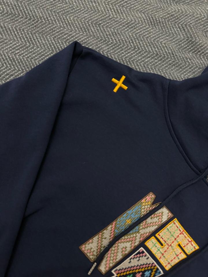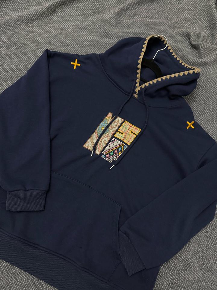 Худи очень красивое стильное, в идеальном состоянии. Цвет темно синий. Размер М, сидит оверсайз. Материал дышащий приятный, внутри нет флиса, жарко не будет Артикул: 511376