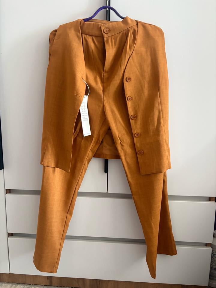Продам двойку под Zara, новая с этикетками, не подошёл размер. Цвет горчично-оранжевый. Брюки широкие, сзади на резинке, есть карманы. Артикул: 511573