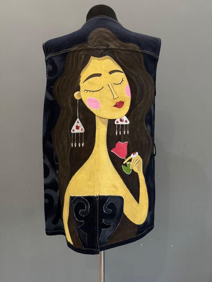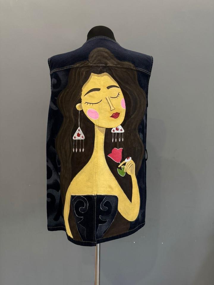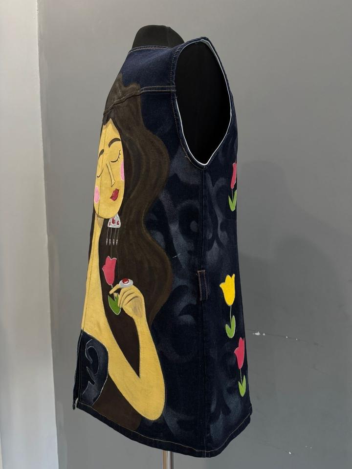 Джинсовая жилетка, ручная росписьM