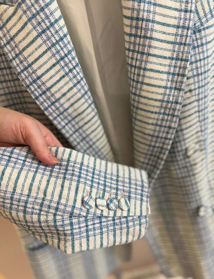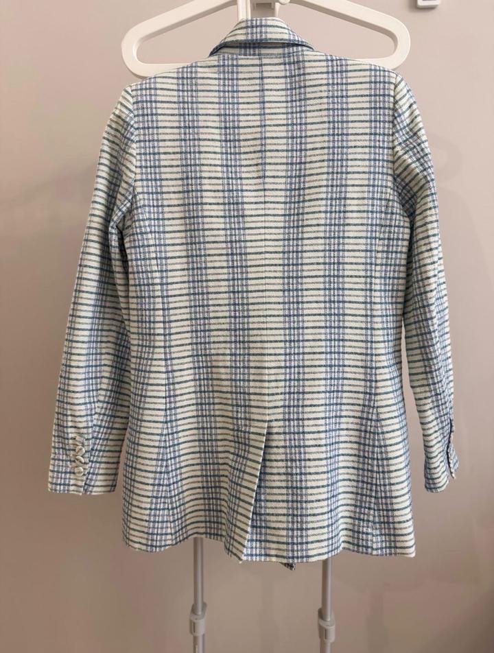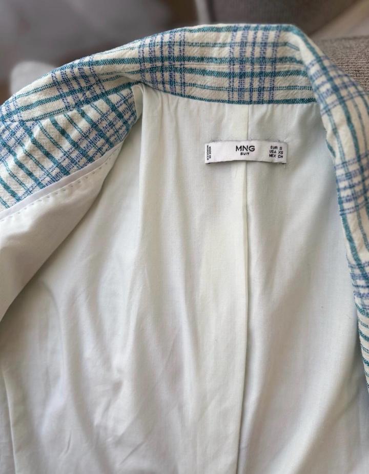 Стильный клетчатый пиджак Mango с блеском | S/XS Потрясающий структурированный блейзер от Mango. Текстурированная ткань в стильную клетку с вплетением слегка блестящих нитей (золотисто-зеленых). Идеален для образов «на выход» с платьями, выглядит дорого и качественно. Прямой крой, отлично держит форму. Состояние отличное. • Бренд: Mango • Размер: S/XS • Состояние: Отличное • Особенности: Текстурированная ткань с легким люрексом. Артикул: 511879