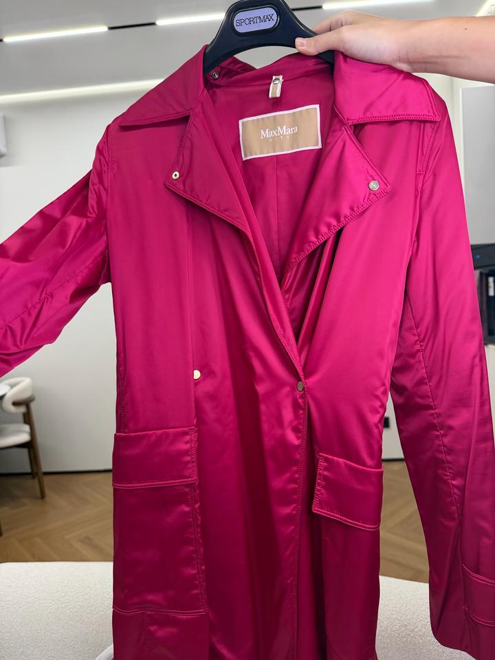 Плащ Max Mara (линия Max Mara City) в насыщенном малиновом оттенке ❤️ Эффектная и стильная вещь, которая сразу делает образ дорогим и заметным. Лёгкий, комфортный, идеально на весну/осень. Классический крой с фирменной фурнитурой и аккуратной посадкой. 📌 Состав: полиамид, полиэстер, эластан (приятный, гладкий материал с лёгким блеском) 📌 Размер: 34 (подойдёт S-М) Состояние: идеальное Носка : 1 раз Артикул: 511888